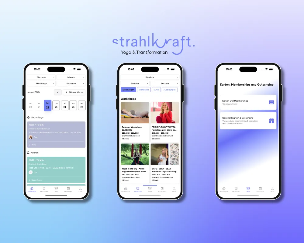 Mit der Branded App lässt Strahlkraft ihre drei Yogastudios in Dortmund, Bochum und Soest auch online strahlen.